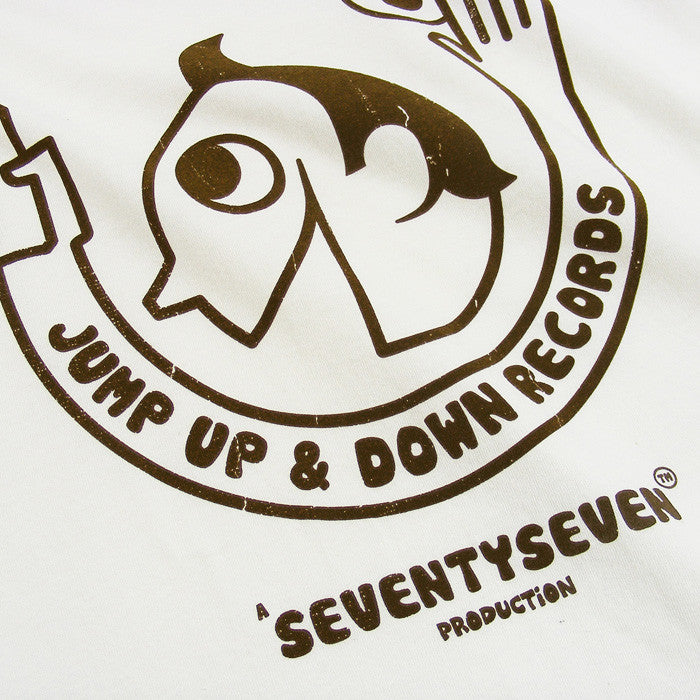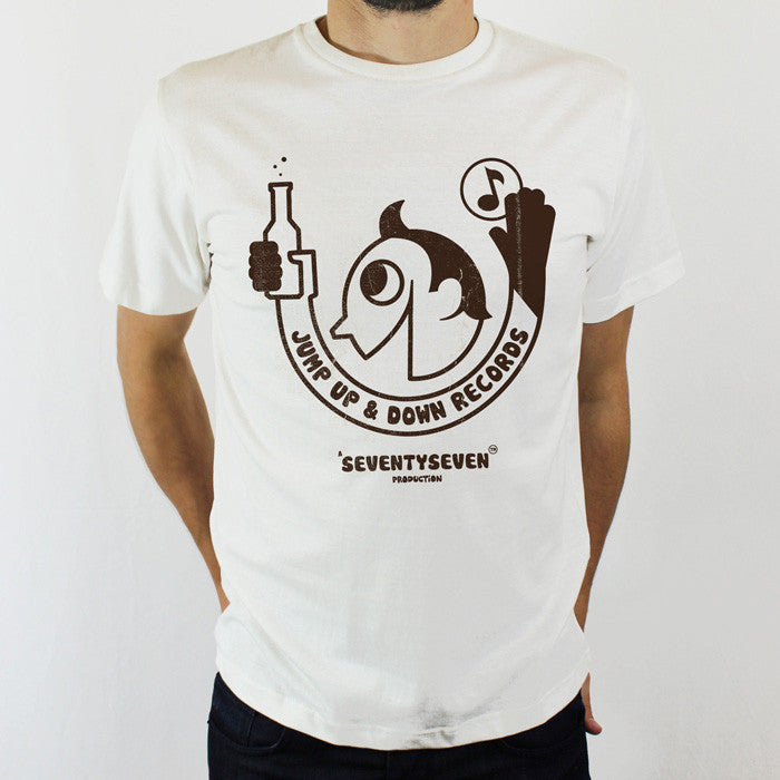 Custom made 100% cotton premium t-shirt with single colour 70's logo style 'Happy Days' sublimation ink chest print from Seventyseven.